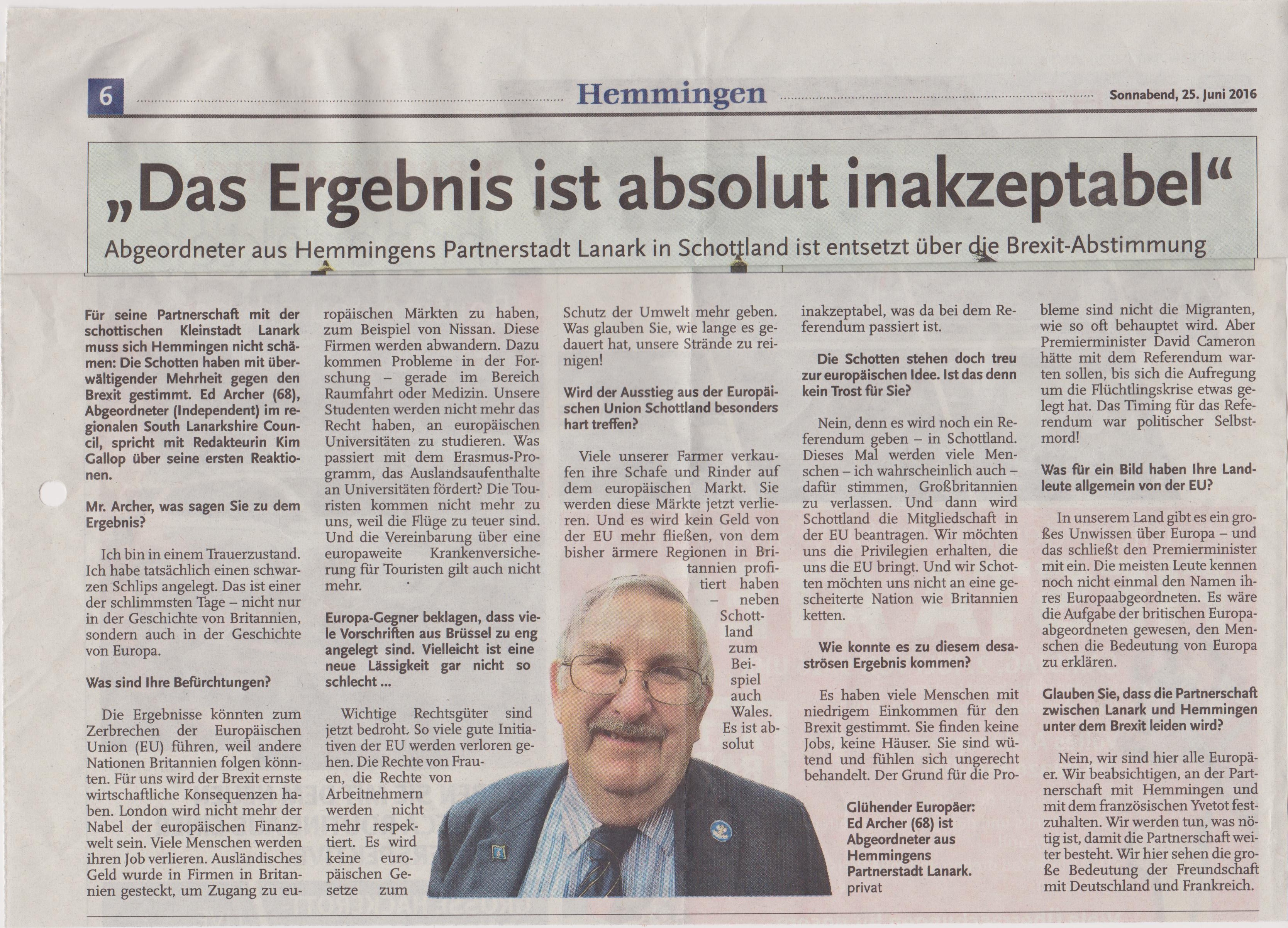Chor aus der Partnerstadt Yvetot auf Durchreise in Hemmingen PAKO vermittelt Praktikumsplätze in der schottischen Partnergemeinde