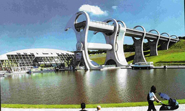 Das Schiffshebewerk Falkirk Wheel unweit Lanark.